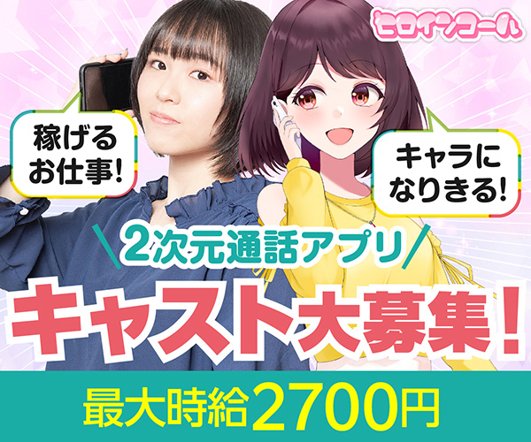 ヒロインコールは通話アプリ内で美少女キャラクターになりきって男性とお話ししたりメールのやり取りをして稼げるアプリです。ヒロインコールはアダルト要素が厳禁な完全ノンアダルトのお仕事になります。チャットを1通受信するごとに15円の報酬が発生します。更に画像や動画のやり取りで1通あたり20~50円の報酬になります。出先の隙間時間にちょこちょこやり取りするだけでお小遣い程度の額を稼げます。勿論通話に抵抗が無ければ積極的に挑戦してより稼ぐこともできますよ♪是非稼げるメルレアプリのヒロインコールに登録してみてください☆